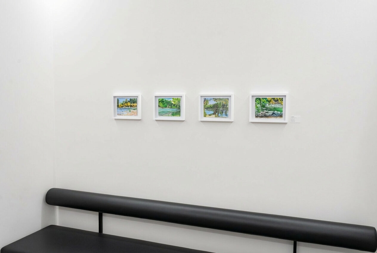 Die Ausstellung vereint unterschiedliche künstlerische Positionen, die sich in verschiedenen Medien mit dem Thema Landschaft auseinandersetzen. Die Werke bieten den Betrachtenden die Möglichkeit, visuell innezuhalten, gedanklich Abstand vom klinischen Alltag zu gewinnen und für einen Moment in eine andere Atmosphäre einzutauchen. Als ästhetische Interventionen schaffen sie Orientierung, Ruhe und eine wohltuende Pause im Spitalbetrieb.